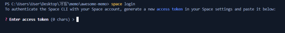 터미널창에 space login을 입력한다