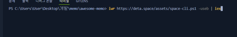 복사한 내용을 그대로 VScode의 터미널 창에 입력해 준다 (사진은 윈도우)